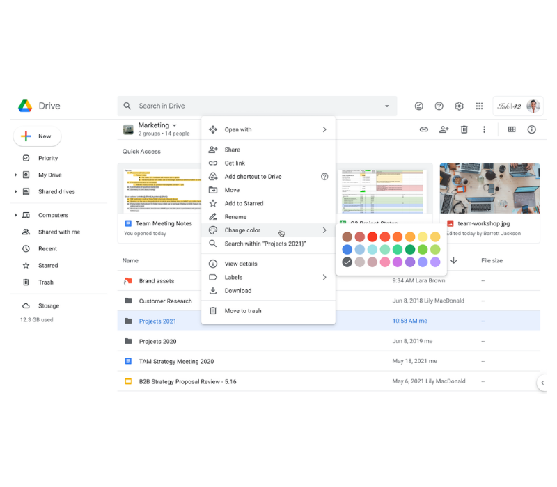 We structure Shared Drives to mirror the folder logic your team is already familiar with, which significantly reduces adoption friction. Permissions are configured at the drive and folder level so departments or individuals only see what they need to without exposing sensitive files to the entire organisation.